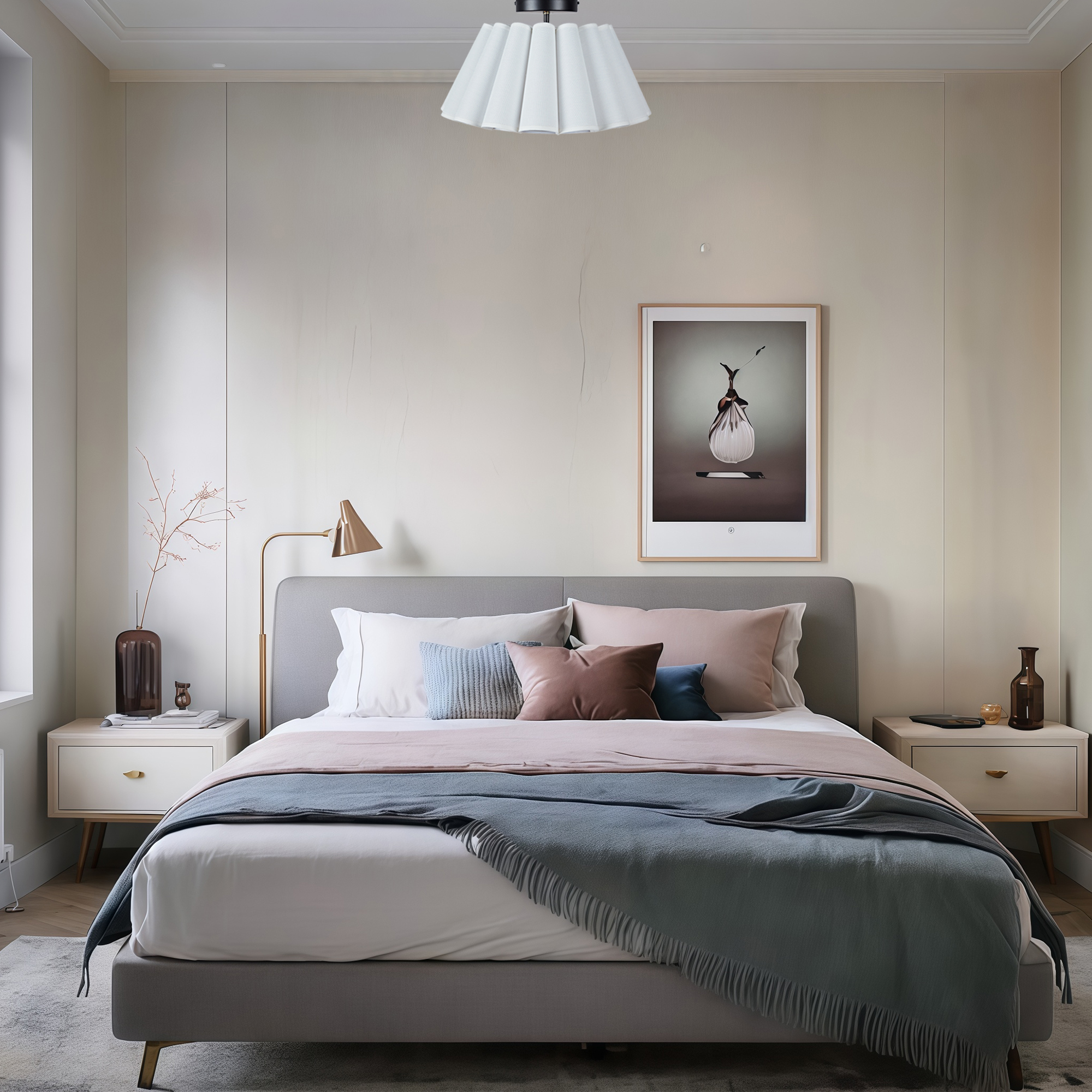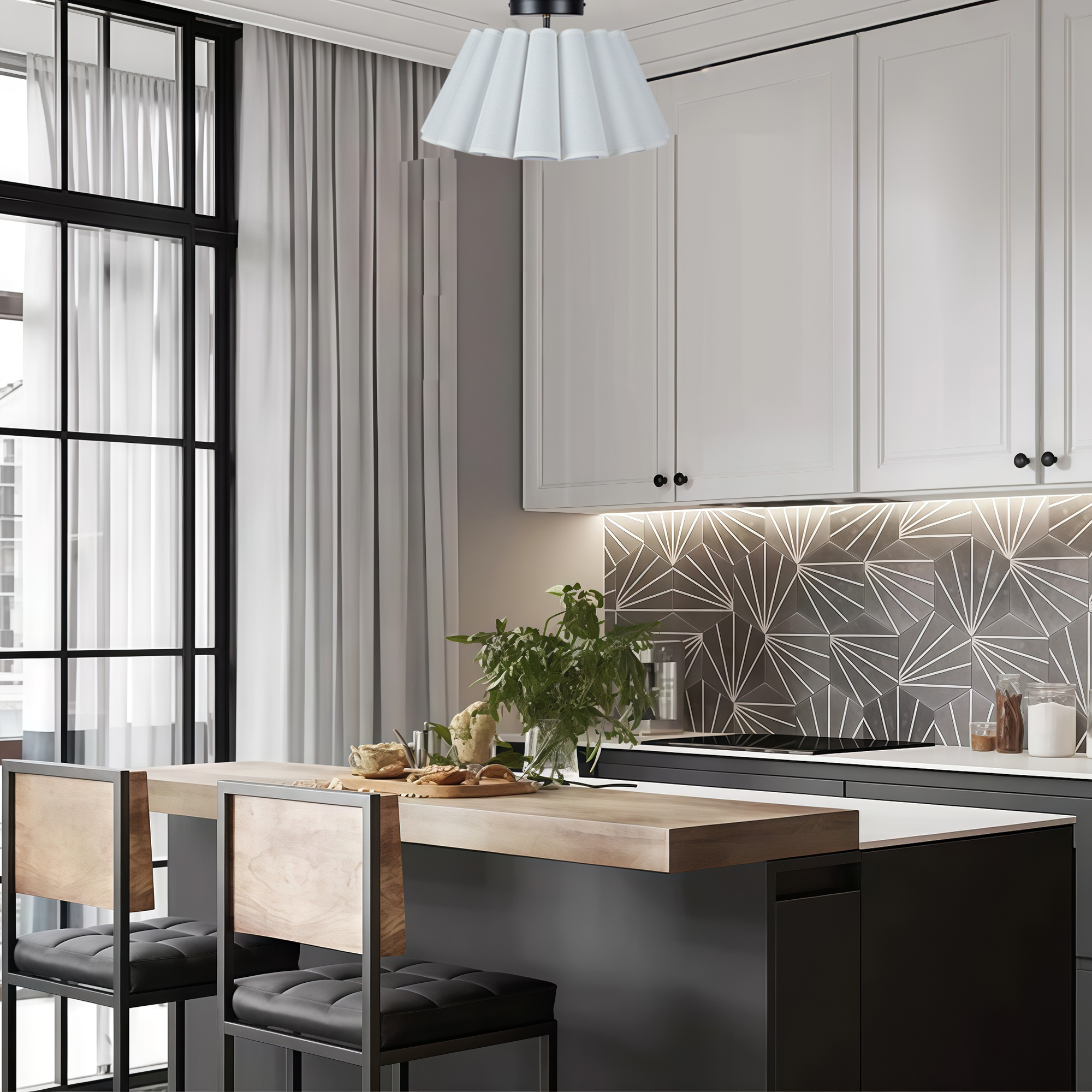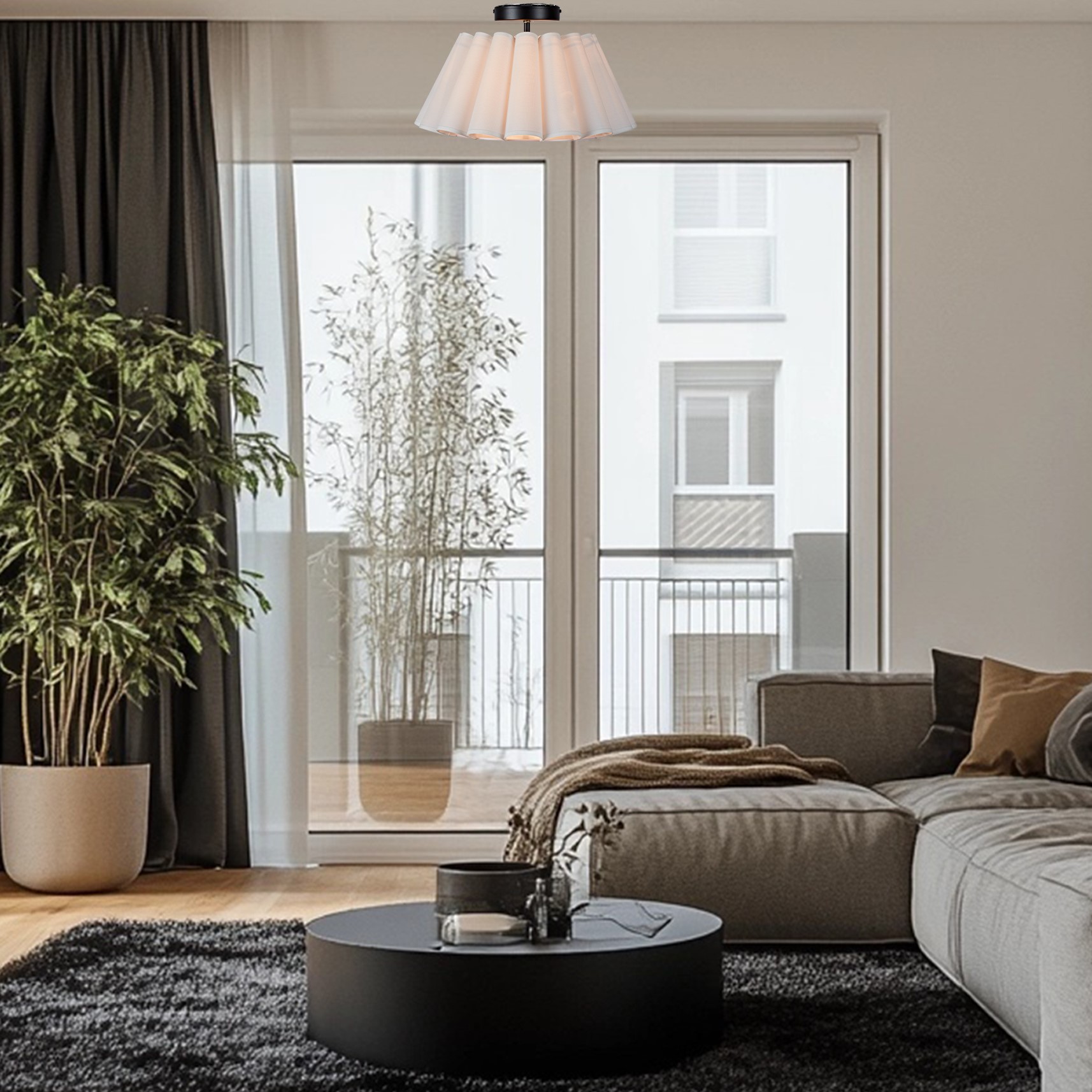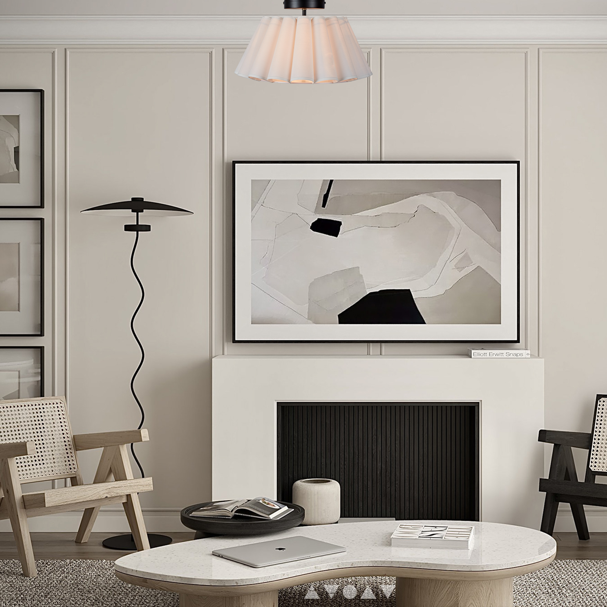 - Elevate the ambiance of your living space with our enchanting Modern White Linen Fluted Semi Flush Mount Ceiling Lamp.
